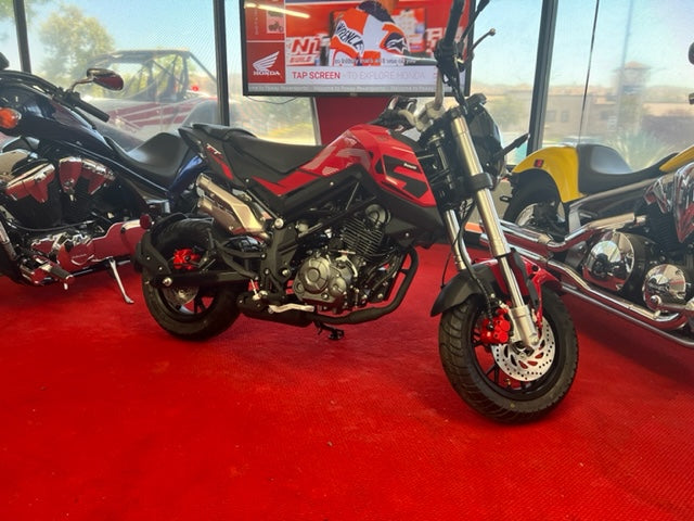 Compact, bold, and unapologetically fun, the 2022 Benelli TNT135 redefines what it means to ride small. Whether you're carving through city traffic, pulling up to the coffee shop, or unleashing some pocket-sized performance on weekend rides, this mini streetfighter punches far above its weight. Designed for urban explorers and new riders alike, the TNT135 combines aggressive styling, a responsive engine, and an incredibly nimble chassis that delivers a surprising amount of confidence and capability. With its signature Italian design and that unmistakable Benelli exhaust note, this isn't just another minibike β it's a statement.