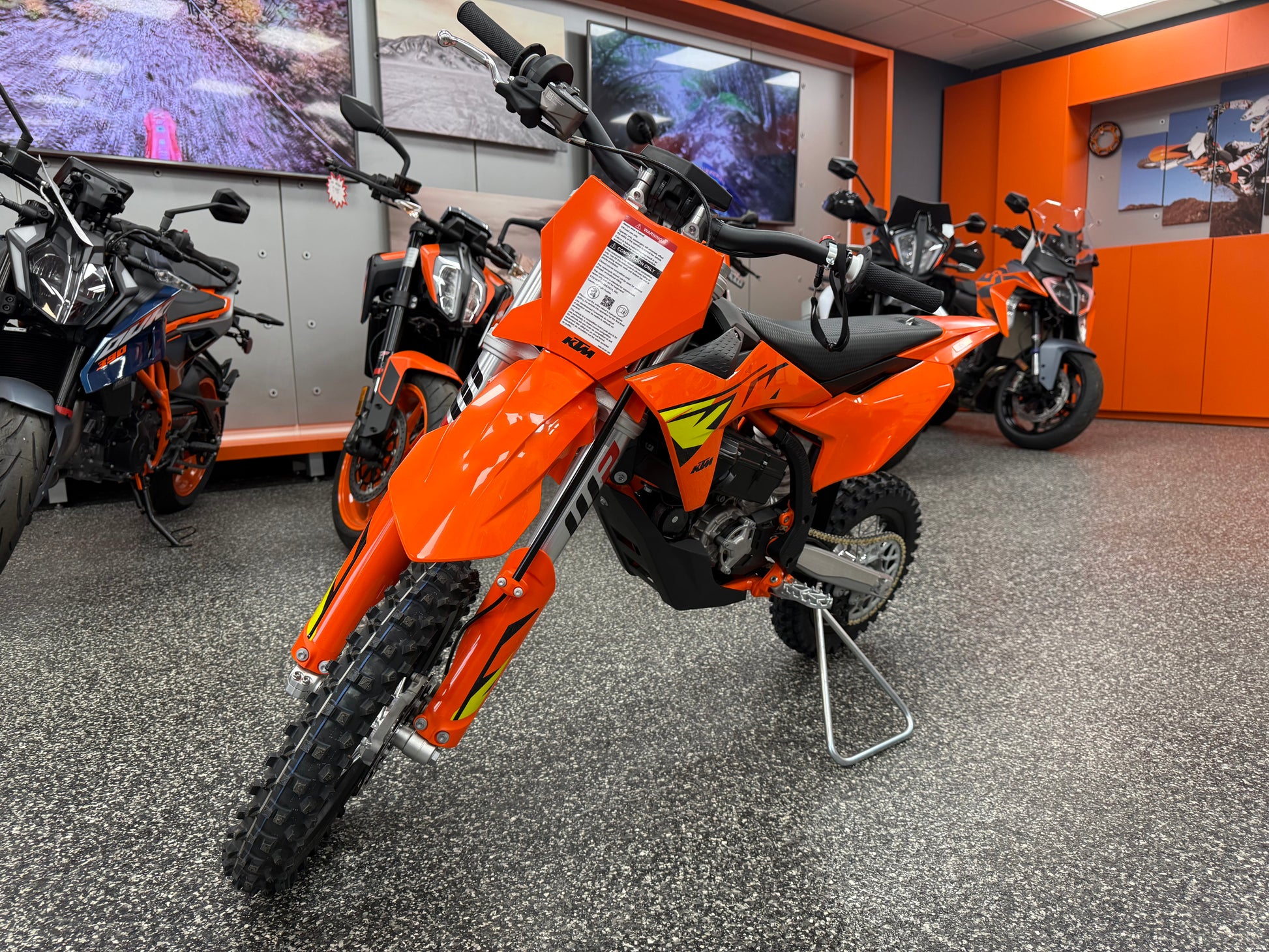 At the heart of the SX-5E is a modern 48-volt brushless electric motor paired with KTM’s Lithium-Ion PowerPack. This system provides smooth, consistent power delivery with a strong torque curve that helps young riders develop throttle control, cornering skills, and confidence without the distractions of shifting or engine noise. The result is a riding experience that feels responsive and exciting while remaining approachable and easy to manage.
